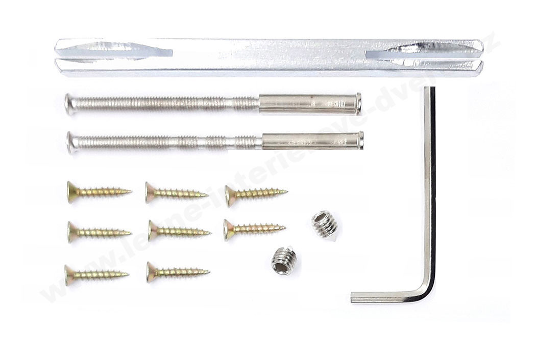 Sada obsahuje: 2 kliky Euforia (levá a pravá klika - sada pro jedny dveře), všechny prvky pro montáž kliky a montážní návod.