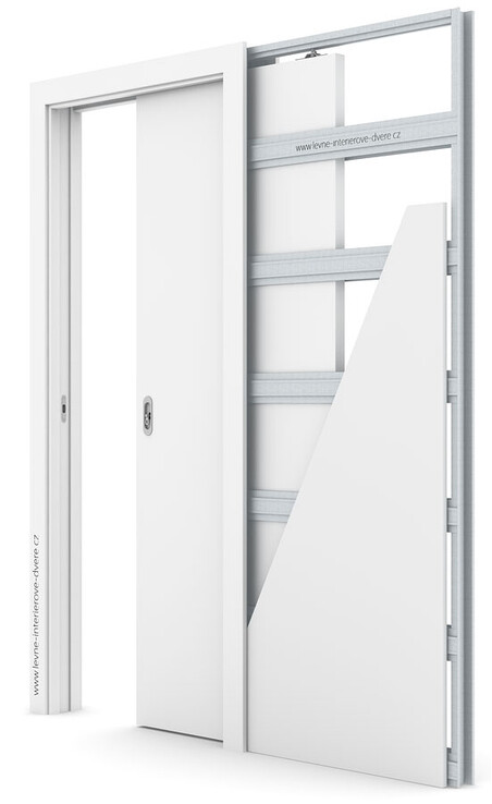 Diskrétní konstrukce pro posuvné dveře do pouzdra (zdi), která umožňuje montáž dveří všude tam, kde běžně dveře otevírané do prostoru nabourávají koncepci navrženého interiéru nebo se nedají použít.
