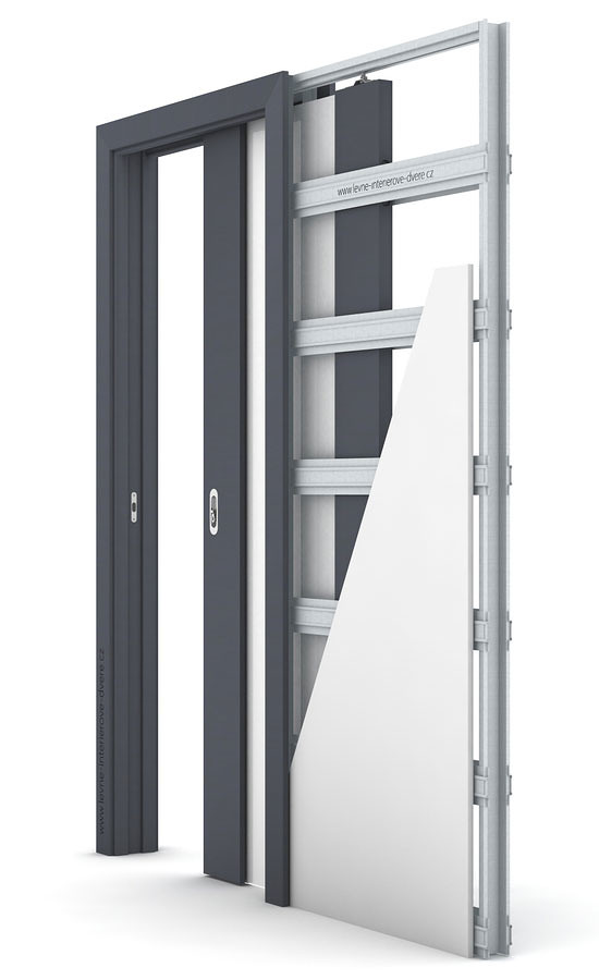 Diskrétní konstrukce pro posuvné dveře do pouzdra (zdi), která umožňuje montáž dveří všude tam, kde běžně dveře otevírané do prostoru nabourávají koncepci navrženého interiéru nebo se nedají použít.