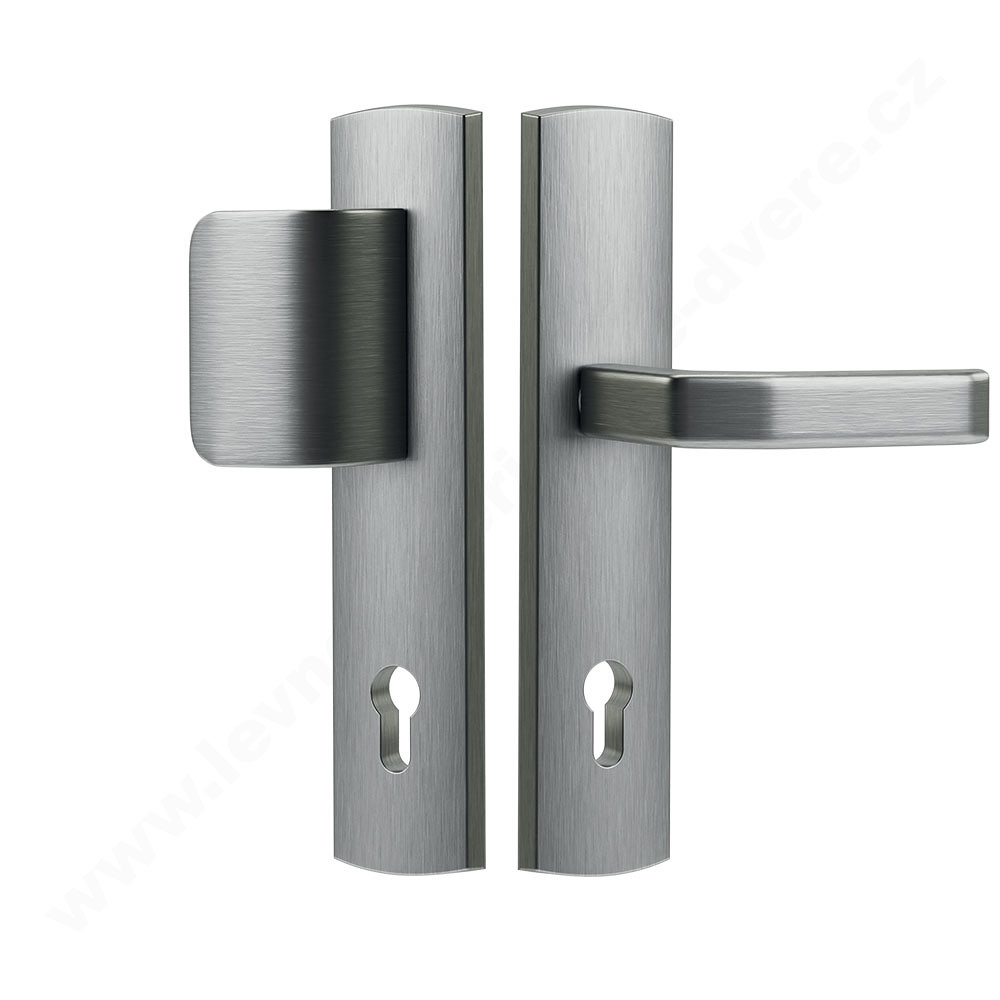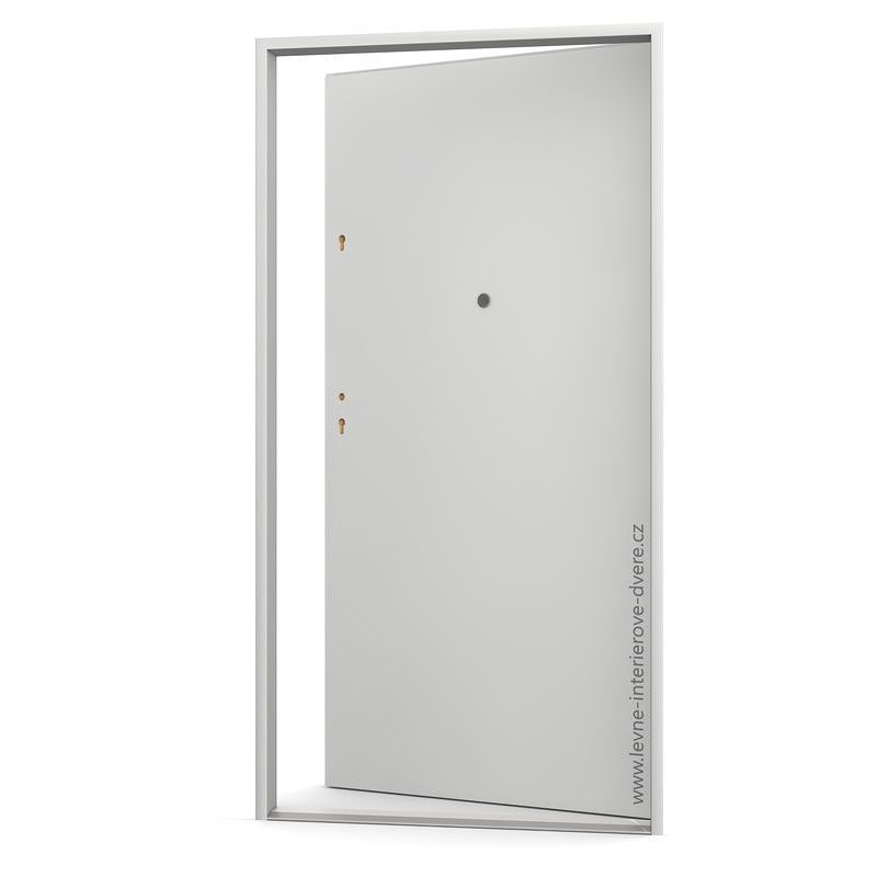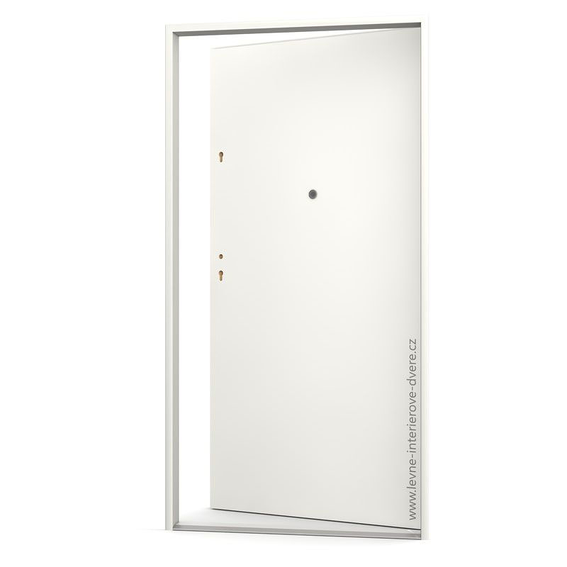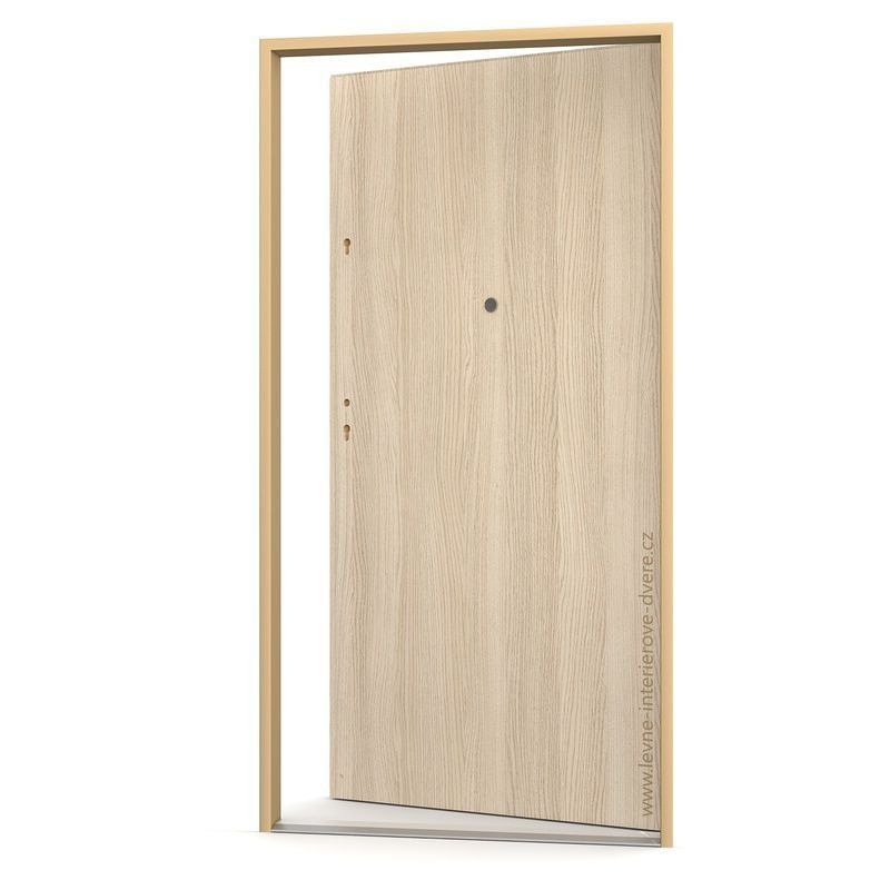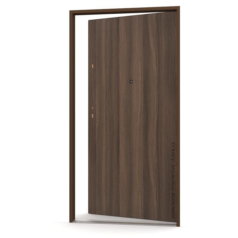 Vchodové (vstupní) dveře EXTREME. Výplň křídla tvoří speciální 5-ti vrstvá struktura v rámu z jehličnatého dřeva. Celek je obložen HDF deskou. Vyrábí se v polodrážkovém provedení.