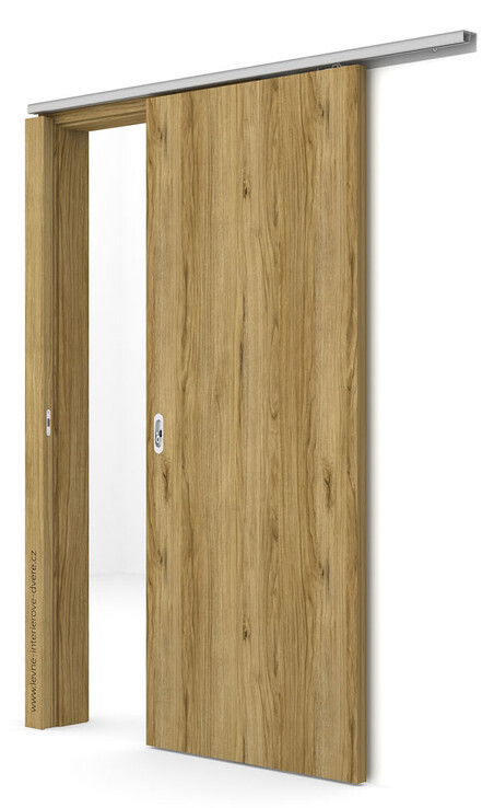 Posuvné dveře na stěnu objednáváme bez prstýnku, posuvné dveře do pouzdra objednáváme s prstýnkem v čele dveří na vytahování dveří z pouzdra.