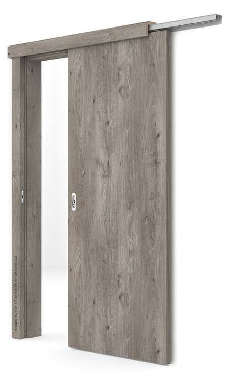 Posuvné dveře na stěnu objednáváme bez prstýnku, posuvné dveře do pouzdra objednáváme s prstýnkem v čele dveří na vytahování dveří z pouzdra.