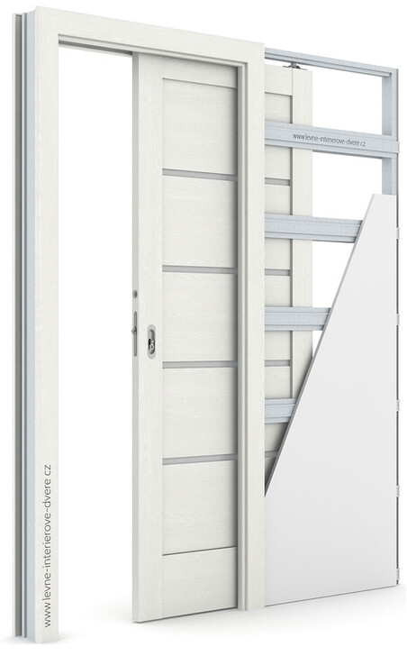 Posuvné dveře na stěnu nebo do pouzdra (úchytka nebo hákový zámek pro zamykání posuvných dveří)