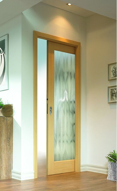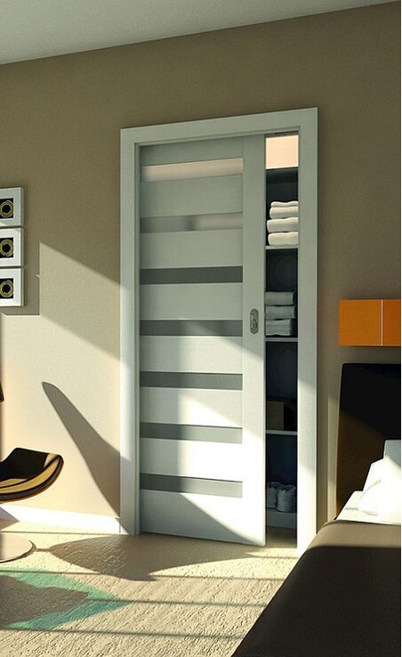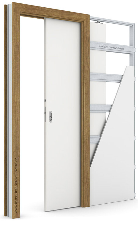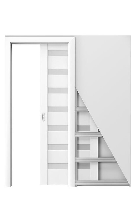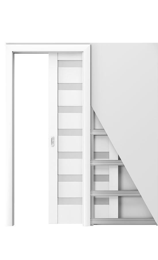 Diskrétní konstrukce pro posuvné dveře do pouzdra (zdi), která umožňuje montáž dveří všude tam, kde běžně dveře otevírané do prostoru nabourávají koncepci navrženého interiéru nebo se nedají použít.